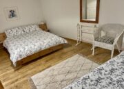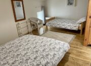 Le plus grand de nos deux gîtes est idéal pour 4 personnes, mais peut accueillir jusqu’à 5 personnes. A l’étage il ya deux chambres à coucher, les deux avec des lits doubles et l’autre comprend également un lit simple. Il ya aussi une salle de douche et des toilette à l’étage. L’espace en bas offre un salon ouvert et cuisine avec canapé modulable chaise longue et grande table de cuisine pays.